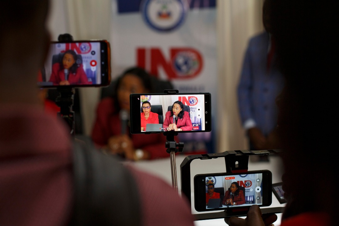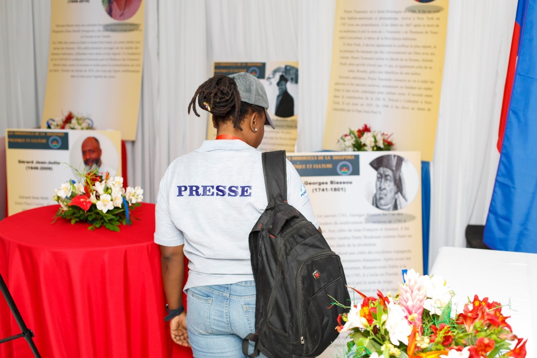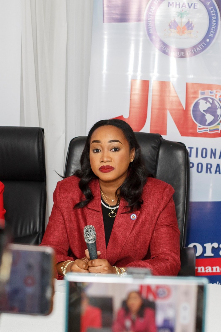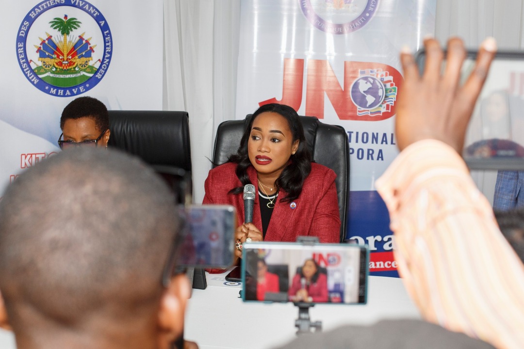 Intervention de la Ministre des Haïtiens Vivant à l'Étranger (MHAVE), Mme Kathia Verdier au micro des journalistes autour des activités commémoratives de la 14e édition de la Journée Nationale de la Diaspora (JND), le mercredi 23 avril 2025.